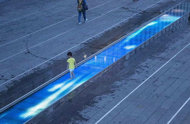 水本無形,它的物理特性讓它能輕易地跟隨容器而呈現(xiàn)不同的面貌。獨特的延展性使得水能呈現(xiàn)無以計數的不同效果。燈光的布置,介質的紋理,顏色和動態(tài)都能給水帶來無窮的變化。